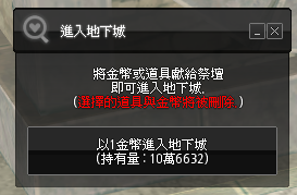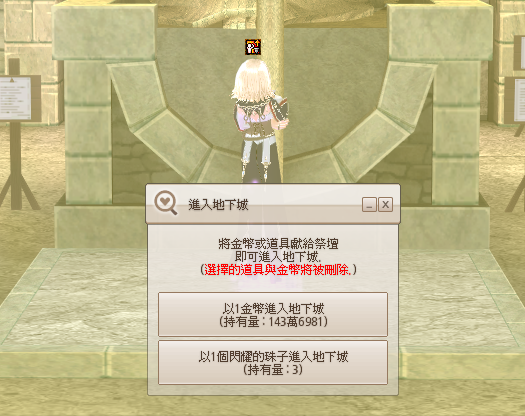 站上祭壇後,點擊女神像會提示選擇以下方式進入地下城: