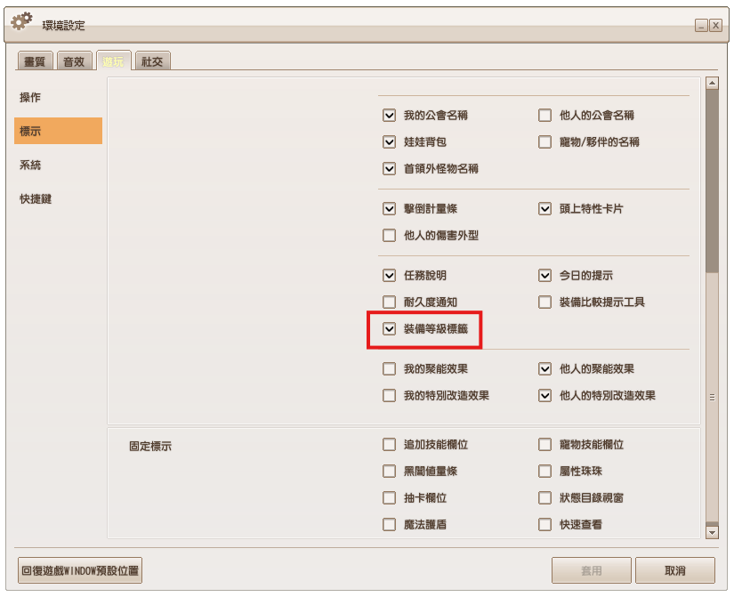 -套用外型卷軸的裝備(需先移除)