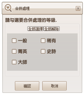 來源裝備(材料欄位)不需要「裝備等級」,但 目標裝備(對象欄位)必須具備「裝備等級」。