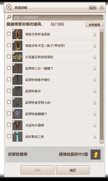 提煉結晶碎片需要使用裝備拆解具有地下城戰利品屬性的道具,才能獲得碎片。