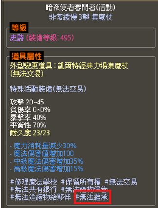 無法繼承的物品,其資訊欄會顯示 「#無法繼承」。