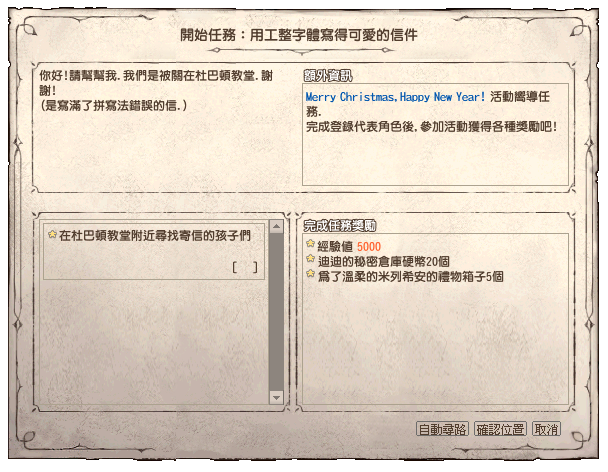 收到嚮導任務,向杜巴頓教堂附近的孩子們對話,並登記為活動代表角色