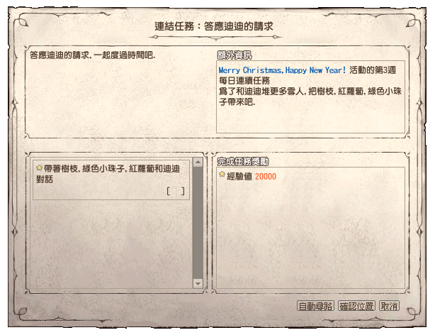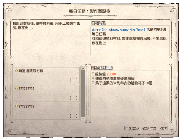 【追加進行裝飾聖誕樹】:可補進第 1 週每日任務