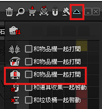 勾選「和物品欄一起打開」選項,可更便利地使用追加保管箱
