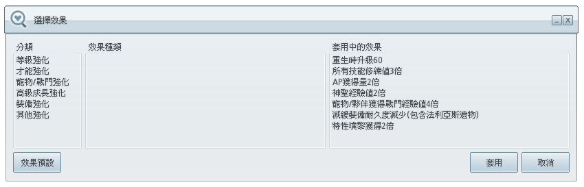 已套用的增益效果可依現實時間每日 1 次進行變更