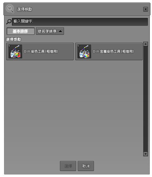 - 使用「DIY染色工具選擇箱(租借用)」後,可從以下道具中選擇 1 種獲得:
