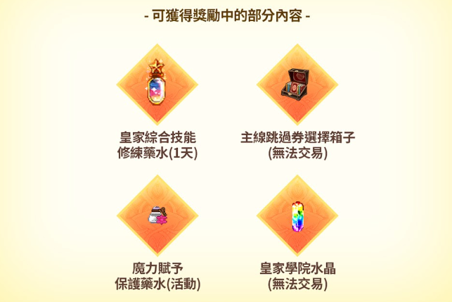 - 最終獎勵僅能在獎勵選擇期間內,使用帳號內 1 個角色領取