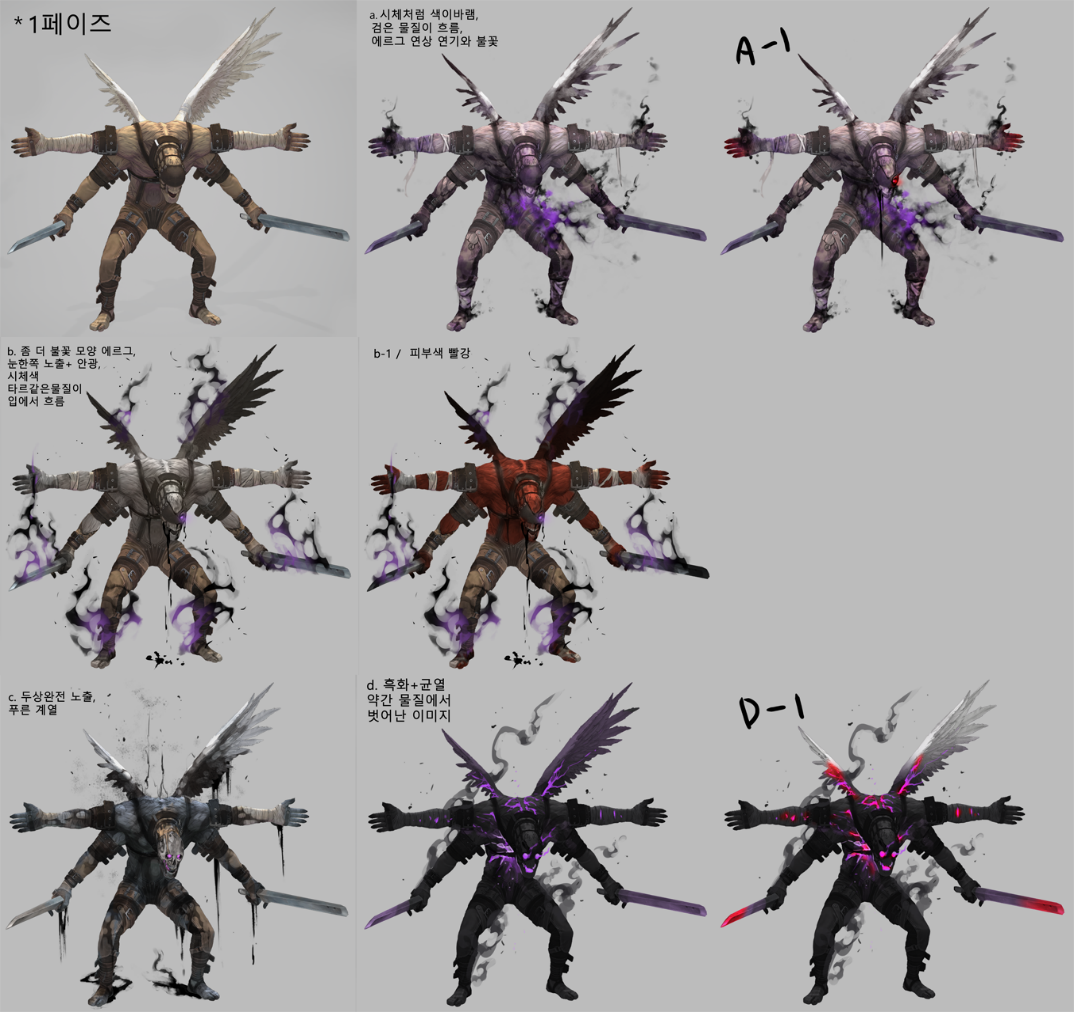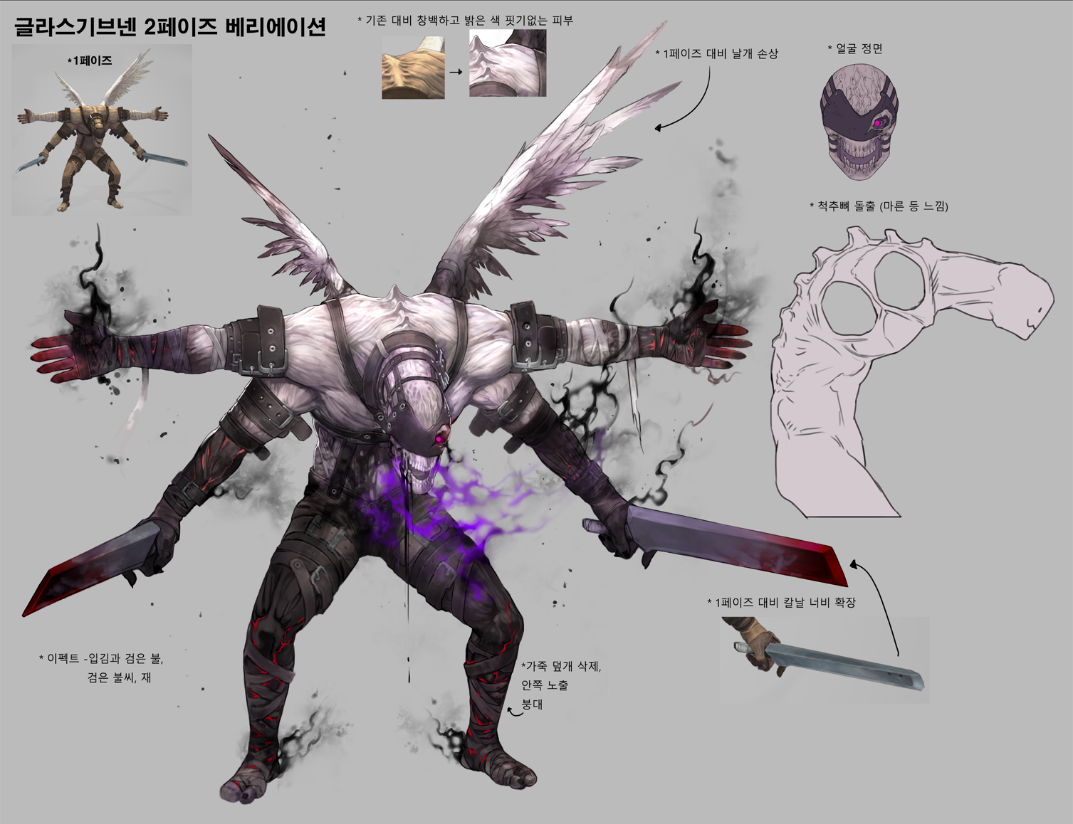 同時考量到整個地圖的氛圍,如果連格里斯貝恩都太昏暗,玩家將很難清楚看見首領的動作,因此最終定案的,是採用較為「亮色系」作為二階段的格里斯貝恩。