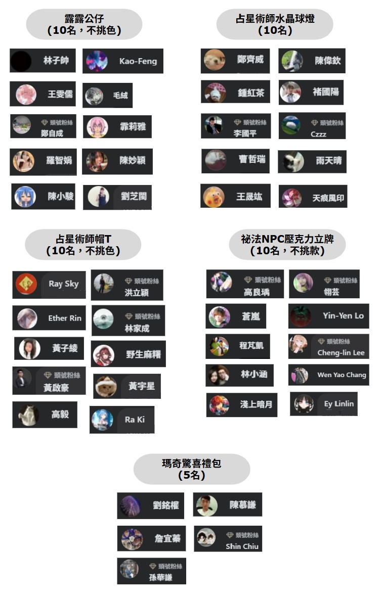 ※ 『祕法立牌、驚喜禮包』中獎者,請私訊《官方粉絲團》提供以下收件資訊