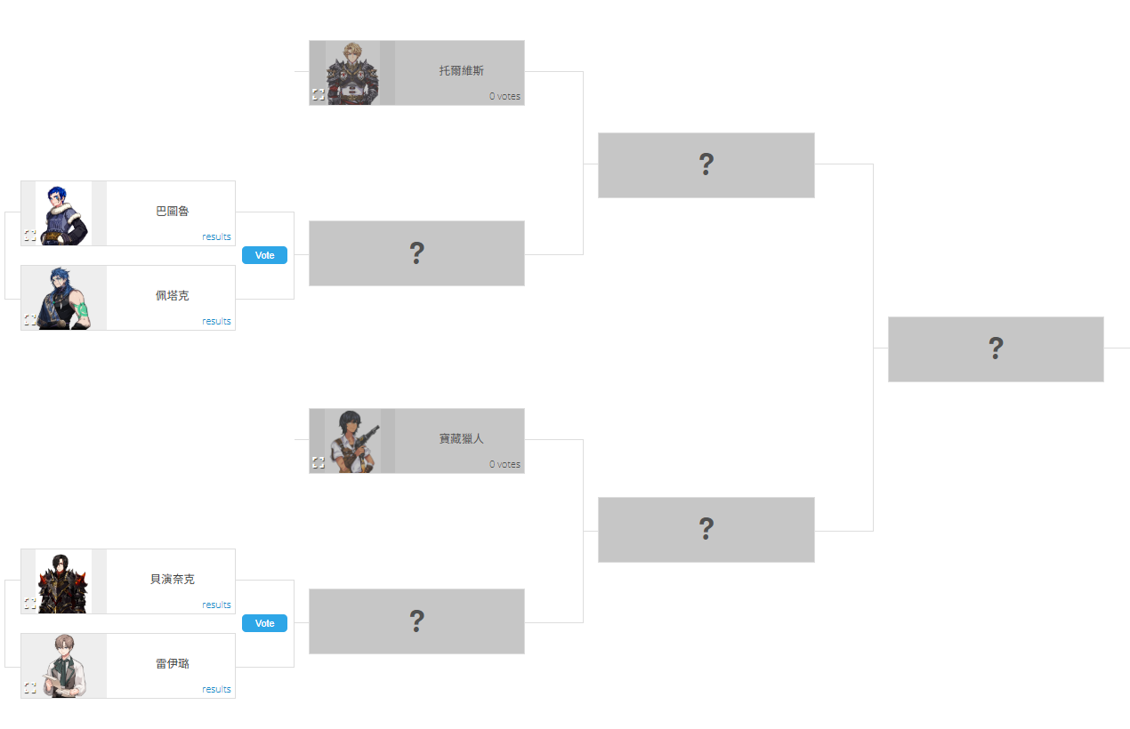 各回合投票: 每個 PK 票選分區可投給 1 位角色